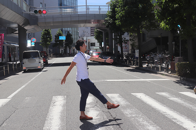 | 店舗はもう目と鼻の先。はやる気持ちを抑え、目の前の横断歩道を冷静に通過。 |