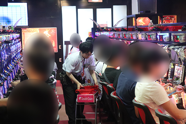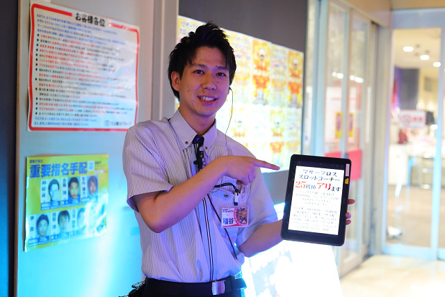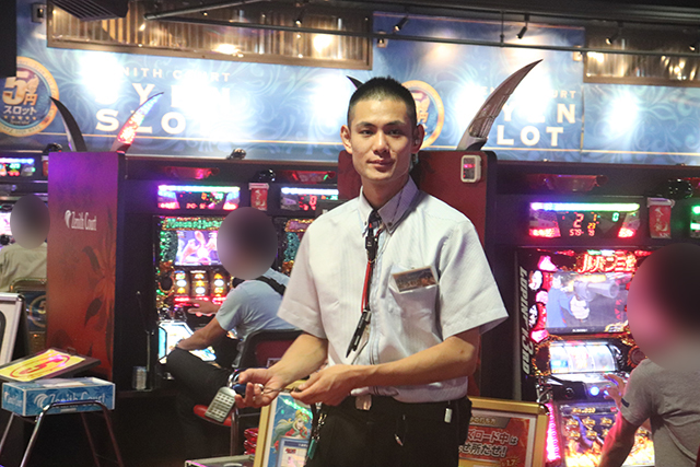 | パチスロフロアでも、スタッフたちが誠心誠意ファンをサポート! | |