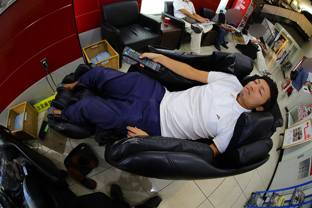 さっそく休暇スペースでくつろぎ始めたK君を引きずり、いざ入店!