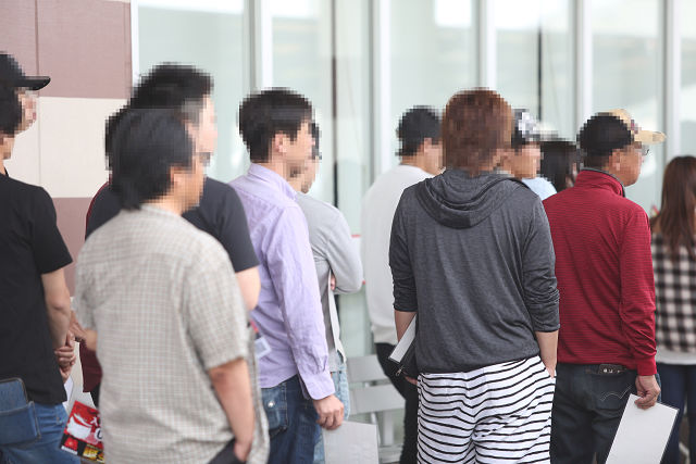 満面の笑顔で迎えるスタッフ、息せき切って目標へ歩を進めるファン。