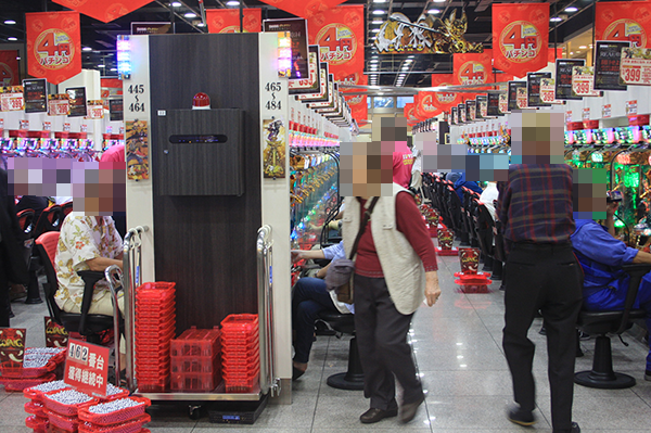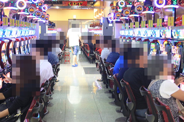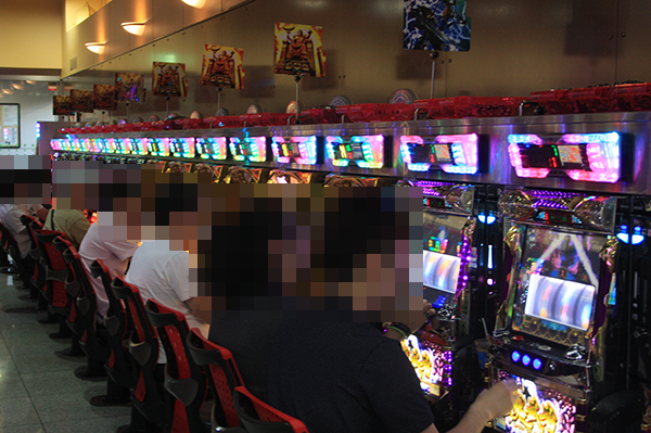 16時を過ぎる頃になると、ホール内には多くのプレイヤーが集まっており、パチンコ・パチスロともに大きな賑わいを見せていた。