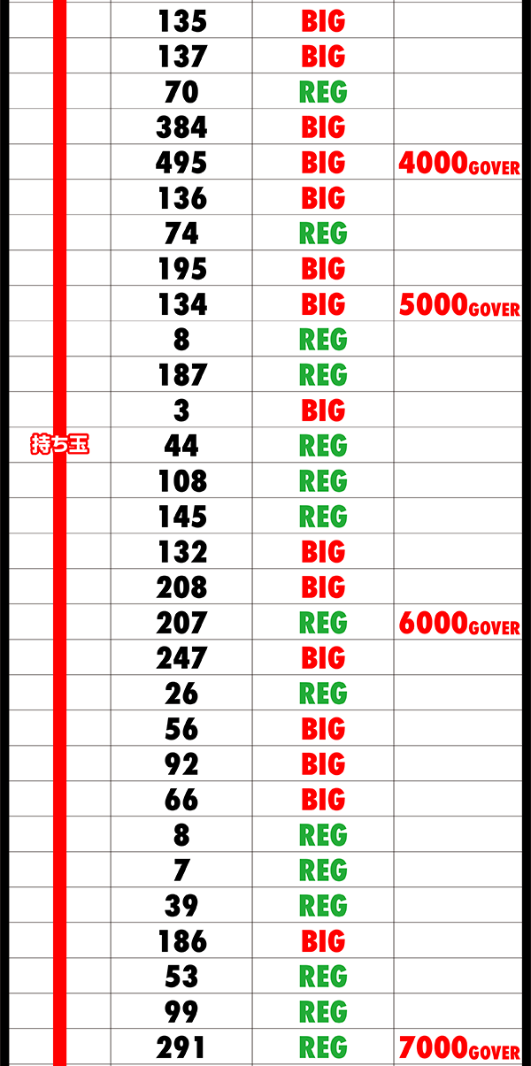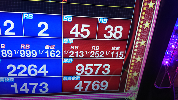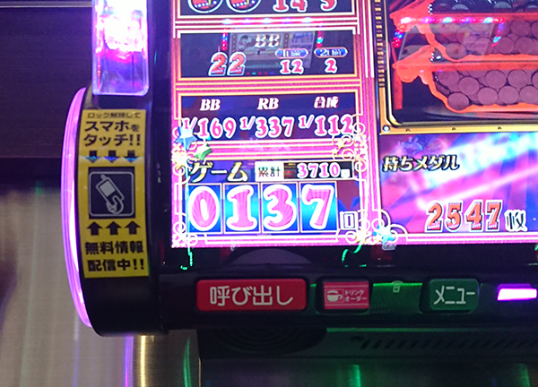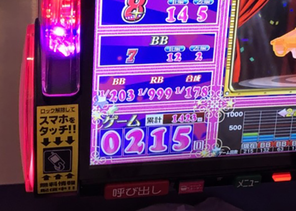 序盤はボーナスがBIGに偏ったこともあり、12時頃までに1500Gにすら辿り着けない低調なスタートとなってしまった。