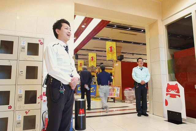 | 前傾姿勢を崩さないファンに対し、ハツラツな挨拶と爽やかな笑顔で出迎えるスタッフ陣。 |