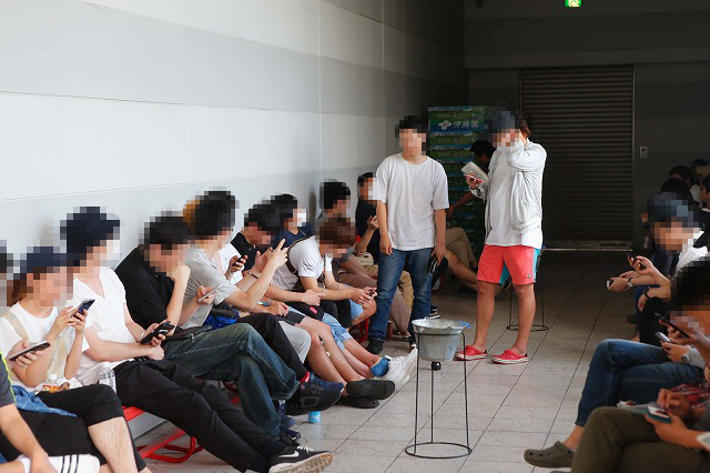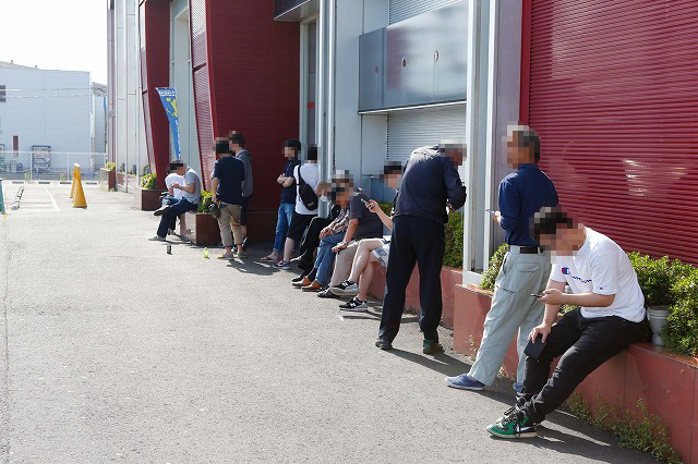夏の陽気に合わせ、気温も、(ファンの)熱意も、アゲアゲな様相を見せる早朝の店前。