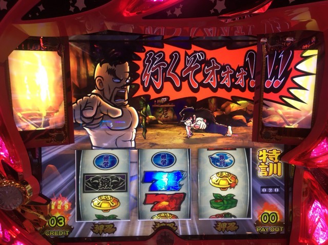 次の初当りに期待しつつ再び打ち始めたところ、最初の対決中に「根性!」と薫先生が叫んでくれたので、これは! とワクワクしながら見守っていると無事特訓へ。