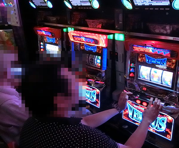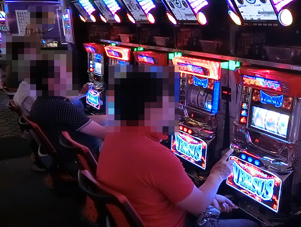 パチスロの醍醐味を堪能できているような姿が多く、明るいムードに包まれていた「バーサス」。プレイヤーたちがあちこちで華麗な活躍を披露していた。