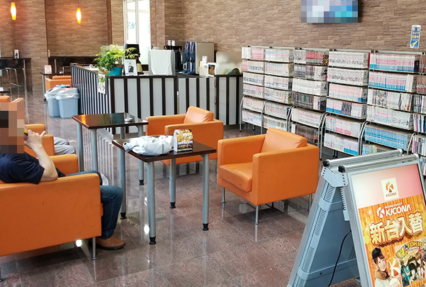 ホール内に設けられたレストスペースには、ゆったりとしたソファやマンガといった設備が充実しており、1日を通して快適に過ごせる環境が整っていると思えた。
