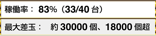 導入から間もない『ぱちんこCR七つの大罪』や『CRJ-RUSH4 HSJ』、『CRダイナマイトキングin沖縄』がフル稼働となっていたことも印象に残っている。