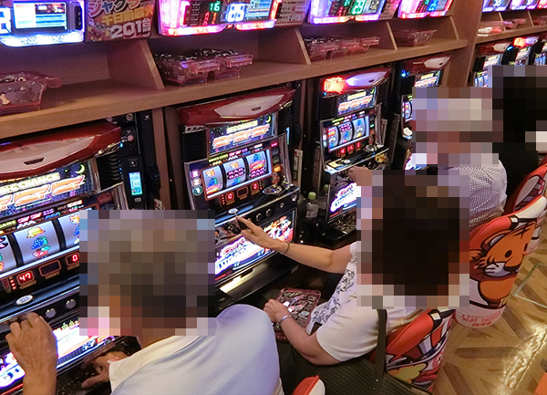 午後になっても、朝イチと変わらずにジャグラーシリーズが盛況であり、パチスロの醍醐味を味わうようなプレイヤーが多数。なかでも、「マイジャグラーⅣ」や「ファンキージャグラー」がみていてうらやましく思うような状況であった。