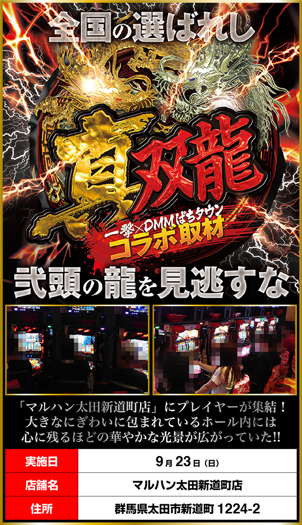 台間に分煙ボードが設置されているなど、設備も充実している「マルハン太田新道町店」を舞台に「真双龍」を敢行。