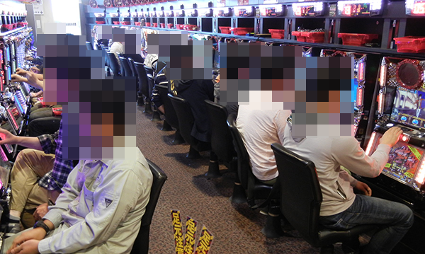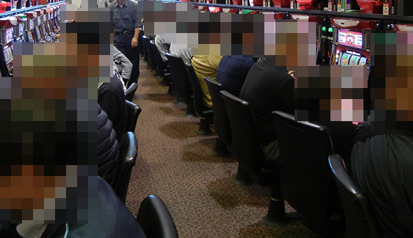 どちらの機種でも満足そうなプレイヤーは確認できたが、とくに「CR牙狼 魔戒ノ花」のシマは台数が多いこともあり、より迫力のある光景が広がっていた。