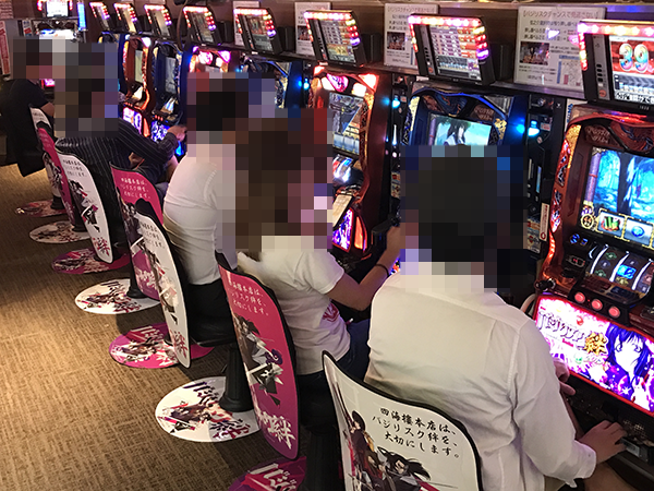夕方頃の20円パチスロにおいては、「沖ドキ!」や「バジリスク~甲賀忍法帖~絆」などの盛り上がりが大きい。プレイヤーたちは、周囲からの注目を集めるような華麗なパフォーマンスを披露していた。