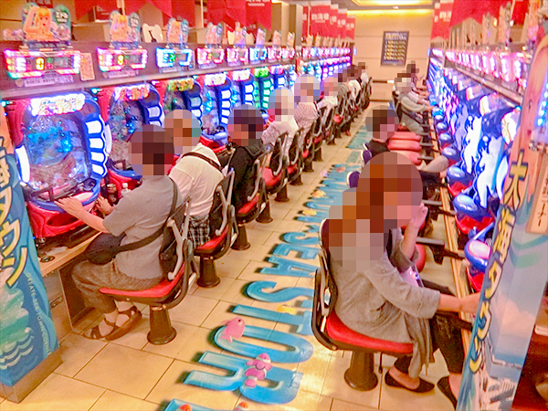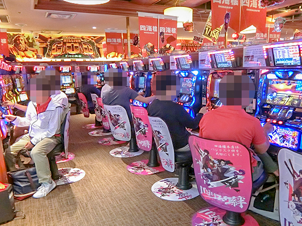 機種構成が魅力的な5円パチスロを見ると、ほぼ満席となるほどの好評を得ていた。