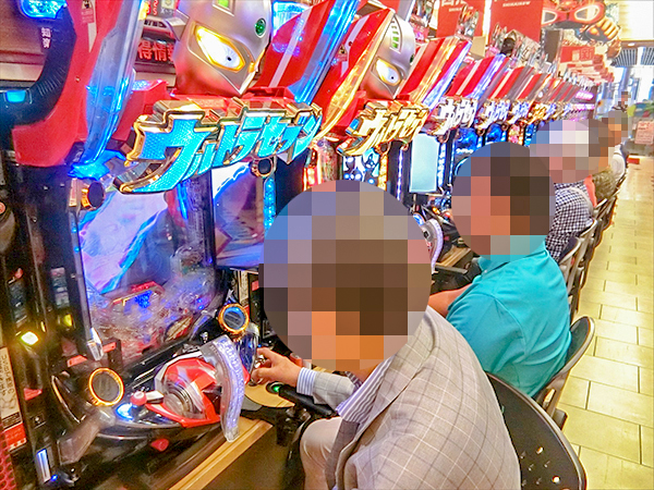 14時半ごろの4円パチンコの様子を見ると、「CRぱちんこウルトラセブン2」や「CR大海物語4」が大盛り上がり。機種性能を存分に発揮するプレイヤーを目の当たりにしている。