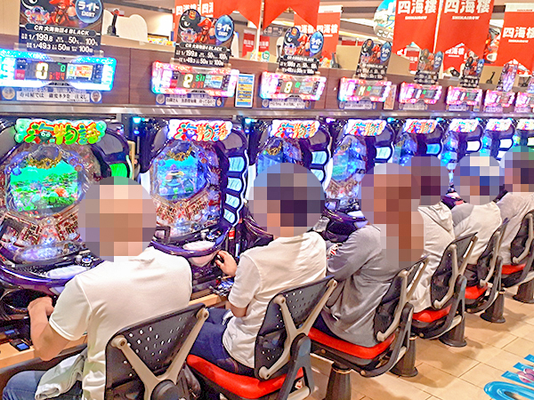 15時過ぎの4円パチンコを見てみると、「CR大海物語4 BLACK」や「ぱちんこCR真・北斗無双 第2章」、「CR大海物語4」が盛況の様子。あちこちでプレイヤーの嬉しそうな表情を確認している。
