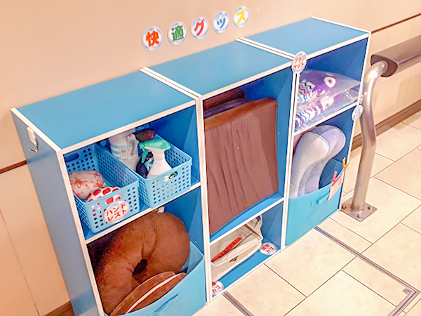 店内には消臭スプレーやクッションなど、アメニティグッズが充実しており、より快適に遊技を楽しむことができる。