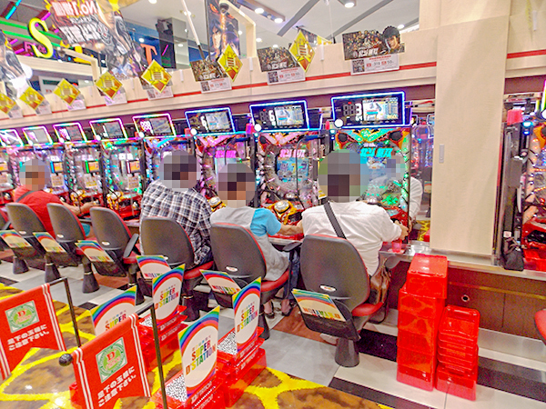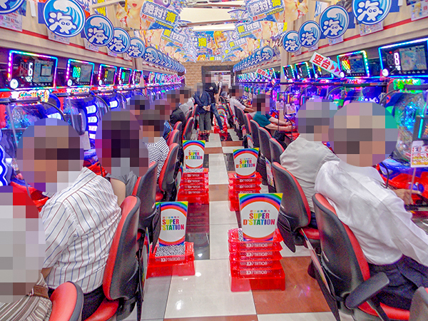 同店はパチンコ680台・パチスロ520台、合わせて1200台を設置するメガホール。取材時も多くのプレイヤーでにぎわっていた。