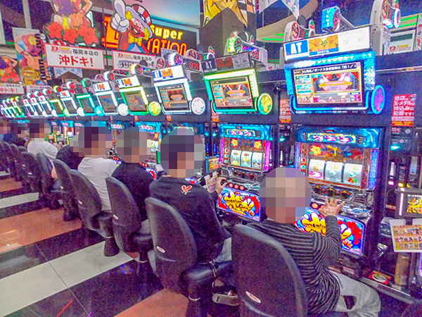 1円パチンコは全体的に高稼働で、空き台を探すのがやっとという状況。各人、好きな機種を見つけ出し、心から楽しんでいたように思う。