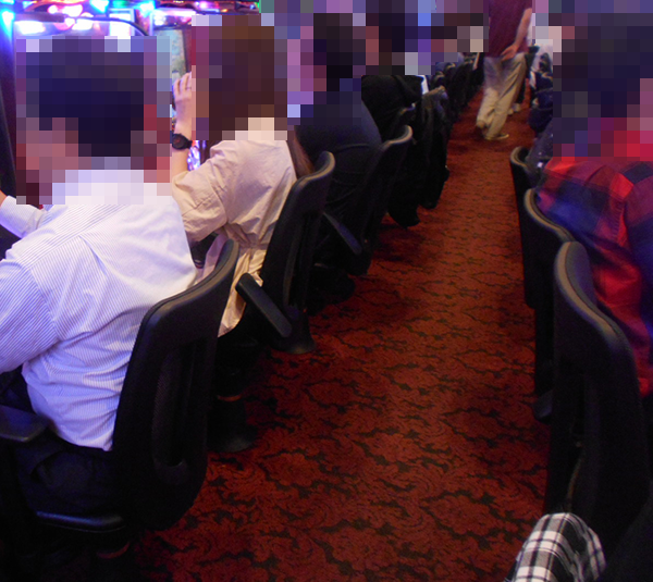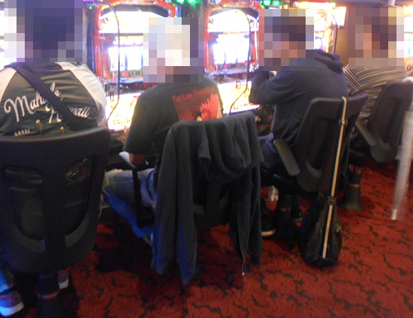15時頃のパチスロでは、「SLOT魔法少女まどか☆マギカ」と「バジリスク~甲賀忍法帖~絆」が開店直後からの盛り上がりをキープ。朝から同じ台を打っているプレイヤーもおり、機種の魅力をじっくりと味わっていることも伝わってきた。