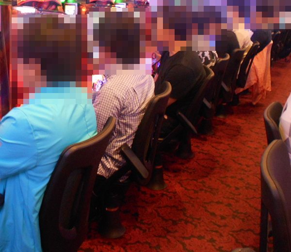 オープン直後のパチスロをみると、いたるところが満席。なかでも、「押忍!番長3」と「バジリスク~甲賀忍法帖~絆」がすぐさまに埋まっていた。