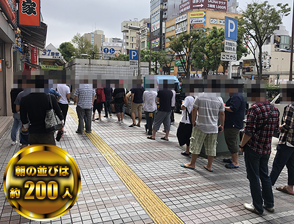 取材日となった9月24日の開店前には約200名のプレイヤーが集合。朝イチからさまざまな機種が楽しまれており、ホール全体が活気づいていたことを覚えている。