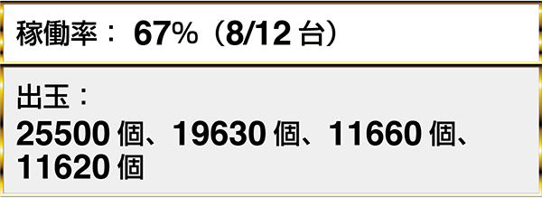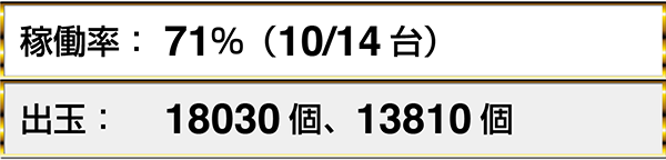 『CR天龍∞ 7000VS』では4台中3台の出玉が10000個を超えていた。