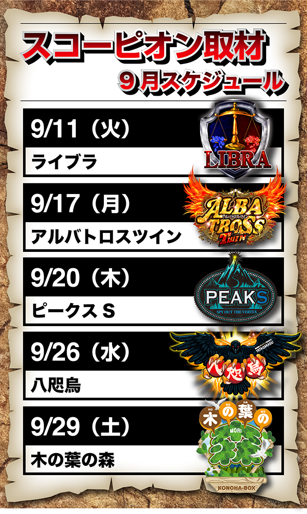 9月11日におこなったのは、パチンコとパチスロを天秤にかけ、ホールの主役を導き出す『ライブラ』。