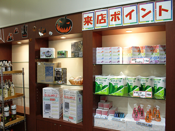 景品コーナーには来店ポイント専用のアイテムも取り揃えてあり、プレイヤーの目を引いていた。