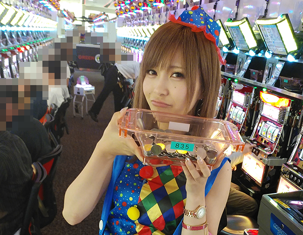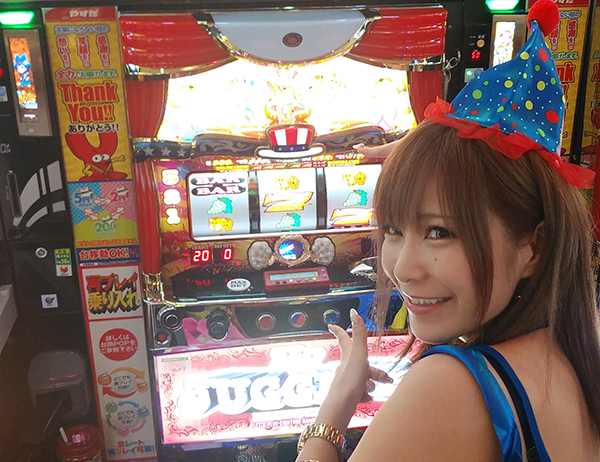 彩ちゃんが実戦する機種は、開店直後から高稼働となっていた「マイジャグラーⅣ」。