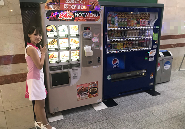 レストスペースの近くには、飲料水だけでなく、ホットスナックの自販機もあります。