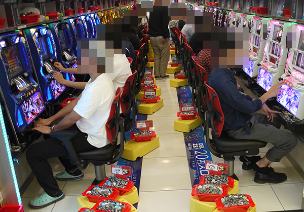 「バジリスク~甲賀忍法帖~絆」を中心に、機種の魅力を体感している様子のプレイヤーが多数。盛り上がっている場所が多く、ホール全体から楽しげなムードが感じられた。