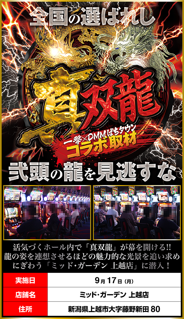 ホール内に潜む龍の存在を探るべく、「ミッド・ガーデン 上越店」にて「真双龍」をおこなった。