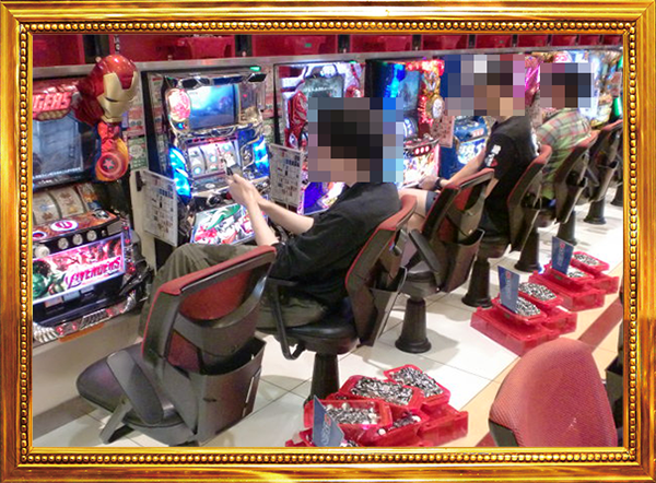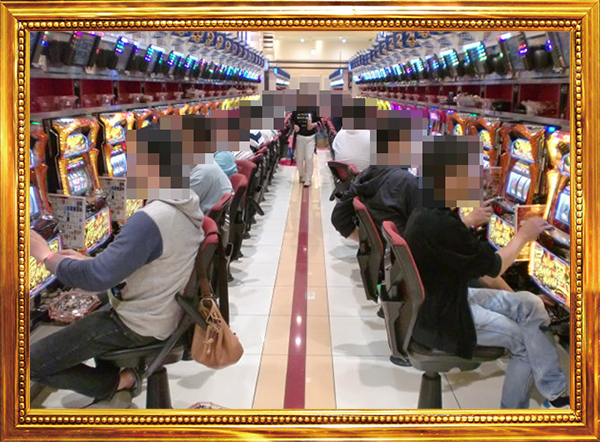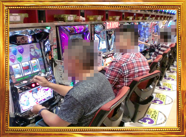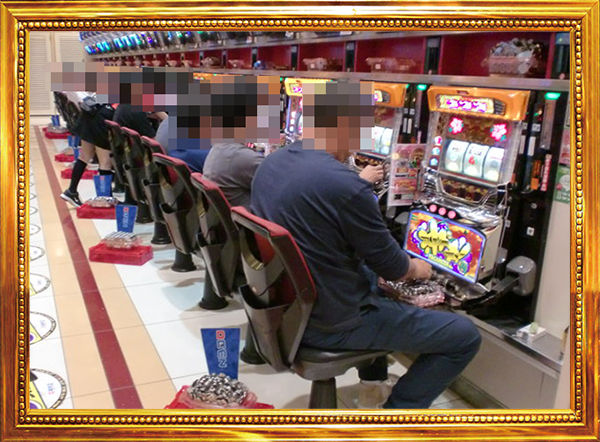 14時ごろの20円パチスロでは、さまざまな機種に笑顔が広がっていた。