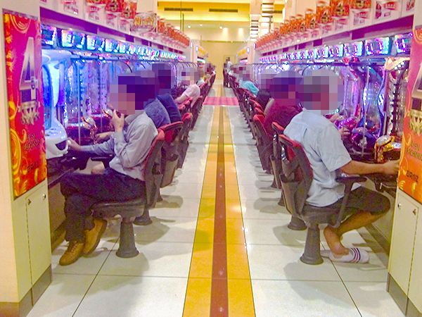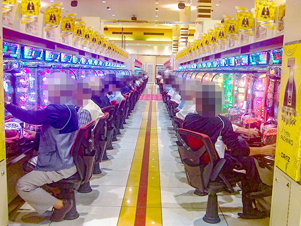 1円パチンコを見てみると、「CRAスーパー海物語 IN JAPAN with 桃太郎電鉄」や「CRA大海物語3Withアグネス・ラム」といった海物語シリーズが人気を集めており、ほぼ満席となるほどのにぎわいを見せていた。