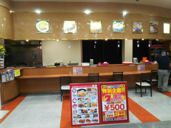 店内にはメニュー数が豊富な食事処を完備。休憩時間などを利用して、空腹を満たすこともできる。
