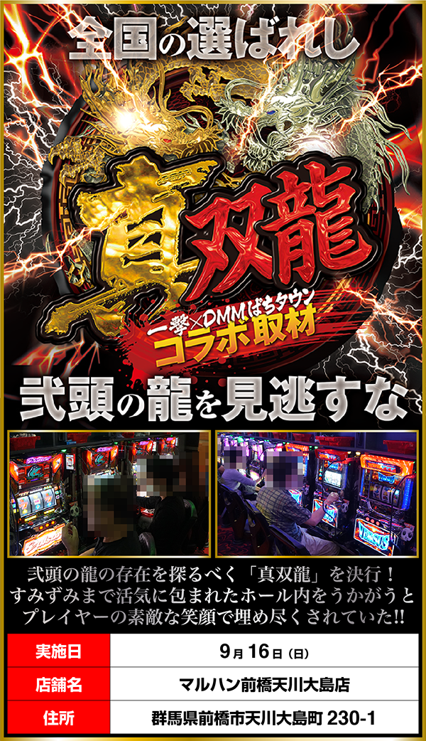 「真双龍」の舞台となった「マルハン前橋天川大島店」に、たくさんのプレイヤーが集合。
