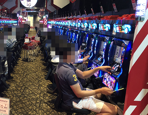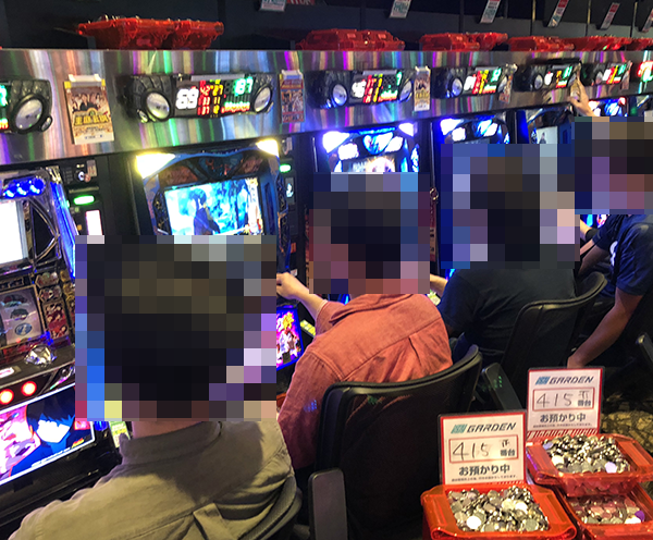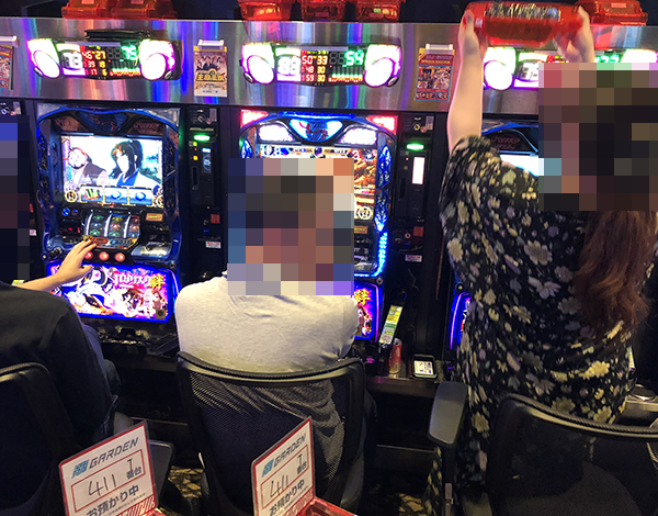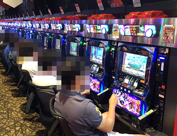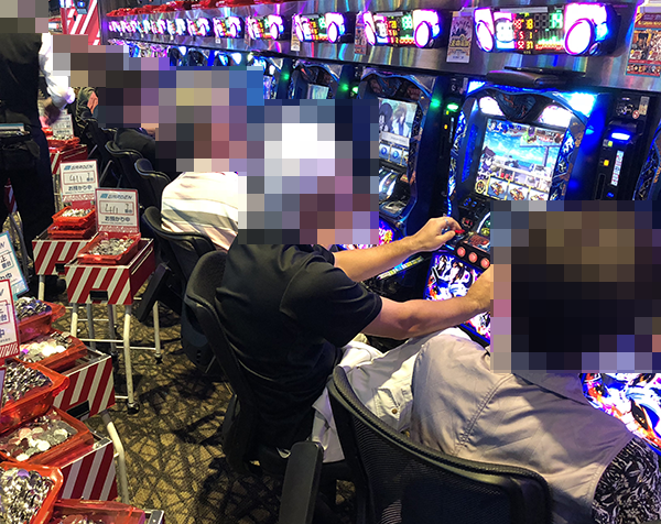 「バジリスク~甲賀忍法帖~絆」のなかで、イキイキとした様子で遊技をおこなう姿からは、存分に楽しめていることも伝わってきた。ジャグラーシリーズや「パチスロ北斗の拳 転生の章」など、さまざまな場所が盛り上がっているホール内において、もっとも魅力的な光景が広がっていたといえるだろう。