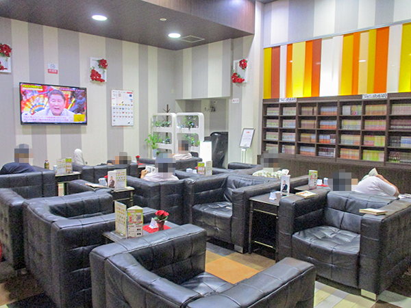 レストスペースには幅広いジャンルの漫画本が用意されており、取材時も読書を満喫するプレイヤーが多かった。