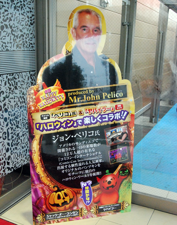 入り口には楽園のオリジナルキャラクターである「ヤバイラー」とハロウィンとのコラボについての立て看板が設置されていた。
