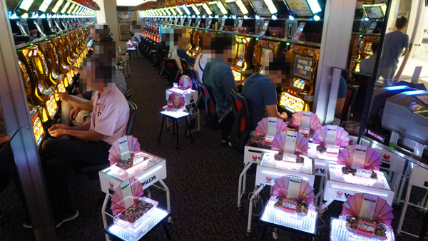 1円パチンコ、5円・2円パチスロの低貸しコーナーを見てみると、様々な機種が活気づいており、常に多くのプレイヤーでにぎわいを見せていた。