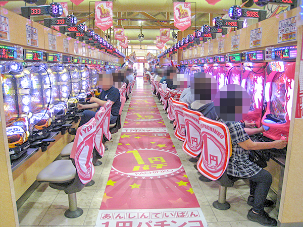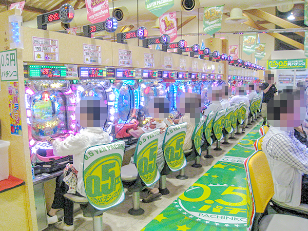 1円・0.5円と2種類用意された低貸し玉パチンコはどちらも大好評。大勢のプレイヤーでにぎわっており、コーナー全体が明るい雰囲気に包まれていた。