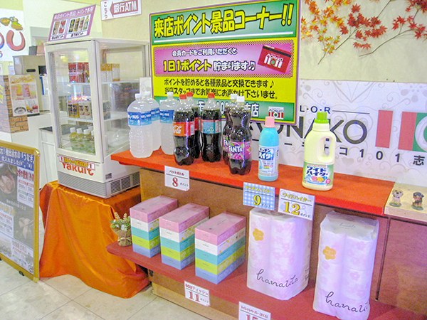 景品コーナーには来店ポイントで交換できるアイテムが用意されており、プレイヤーから注目されていた。