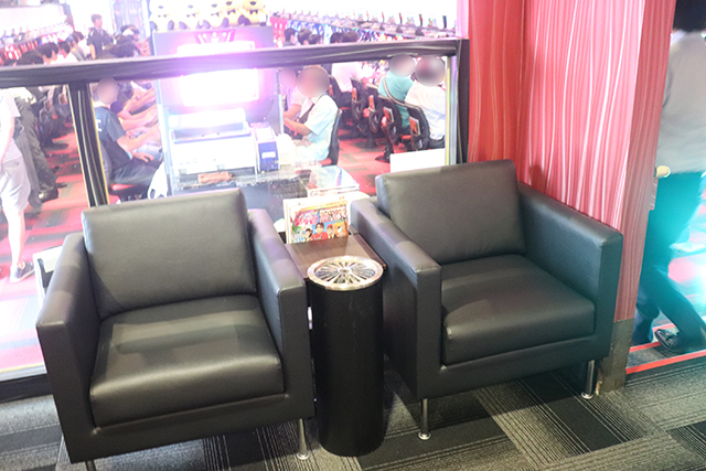 | 休息に最適なリクライニングチェアや、お店全台の挙動をチェックできる大型パネルも設置 |