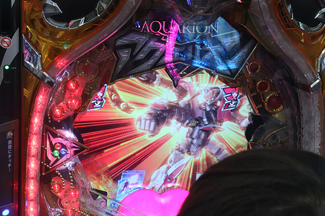| W合体ギミックでも話題の新台『CRフィーバーアクエリオンW 』にも、注目が集まっていた。 | |