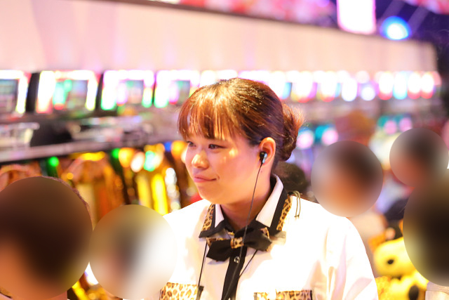 冷静な面持ちのまま、改めて店内の島図や設置機種を確認するファン。
