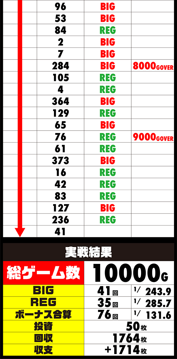 チャレンジを成功させて大量の出玉も獲得と、9時開店であることを差し引いても素晴らしい結果を残せたといえるだろう。
