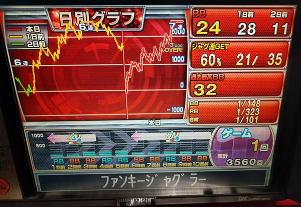 582番台の【ファンキージャグラー】に2日間連続でウェーブが発生!