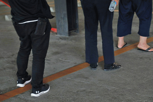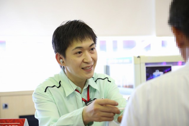 | 順調に入場していく姿を前に、怯まず!緩まず!!全力スマイルのスタッフが迎える。 |