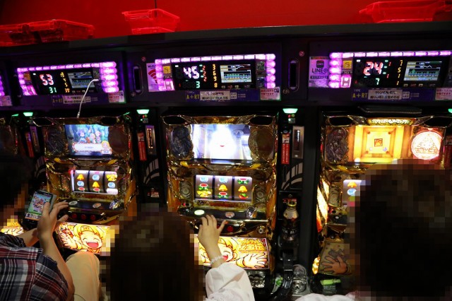 | この日のパチスロは一味違う!?『ジャグラー』シリーズを筆頭にAタイプ系機種の埋まりが早かった。もちろん、『バジリスク~甲賀忍法帖~絆』や『押忍!番長3』などの定番シリーズも仙台泉お馴染みの盛況感! | |