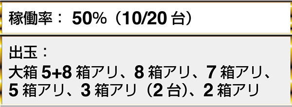 『ぱちんこCR真・北斗無双』などでも、大箱と合わせて10箱以上の出玉を獲得しているプレイヤーがみられた。